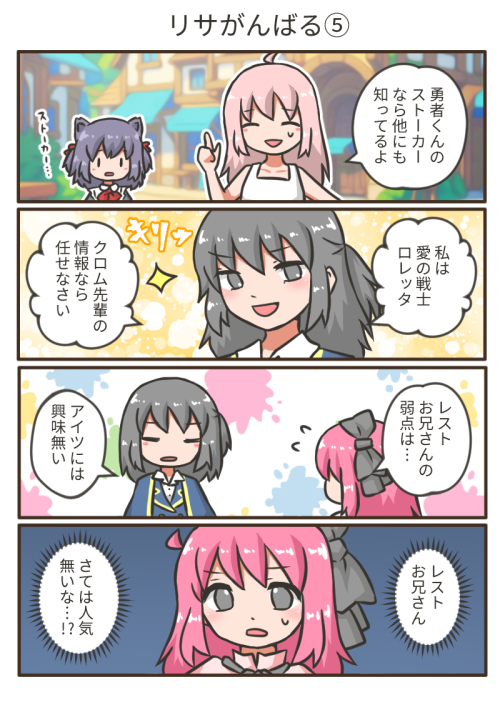 ![]() ちょっとぉ~、女子ぃ~! あんまりいじめるのやめな~? レストくん泣いちゃったじゃ~ん!(嘘泣き) 実際、モテるはずなんですけどね。 レストのことを好きな子たちは、おそらく 遠くから見ているだけなのでしょう。 つまり、ストーカー…!? やっぱり勇者くんたちのストーカーは いっぱいいるんだ…。怖い世界だ…。 |