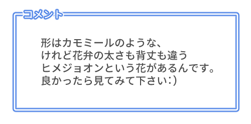 ロレッタ 「あ、本当だ。でも、これ ハルジオンと間違えているような…? 判別が難しすぎる…」 |