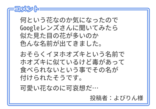 【参考文献】 ・西村 佑子 著『魔女の薬草箱』ヤマケイ文庫(2018) ・稲垣 栄洋 著『雑草手帳:散歩が楽しくなる』東京書籍(2014) ・山田 隆彦 著『自然散策が楽しくなる! 花図鑑』池田書店(2022) ・森 昭彦 著『身近な雑草のふしぎ野原の薬草・毒草から道草まで、 魅力あふれる不思議な世界にようこそ』SBクリエイティブ(2009) |