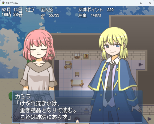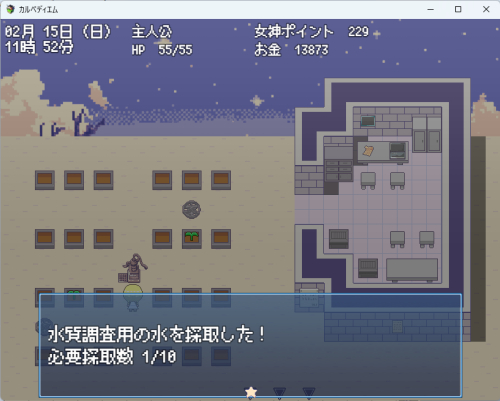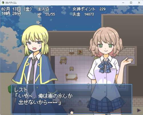 ![]() きれいな水をいっぱい 飲みた~い! という イベント会話を作りました。 おそらく続く…! できれば、ちょっとした クエストに繋げたい…! この世界では汚い水がデフォなので 現代日本みたいなとこから転移してきたら めちゃめちゃしんどそうですね。 がんばれ、現代系JK聖女様…! きれいな水の命運は おそらく君にかかっているぞ! |